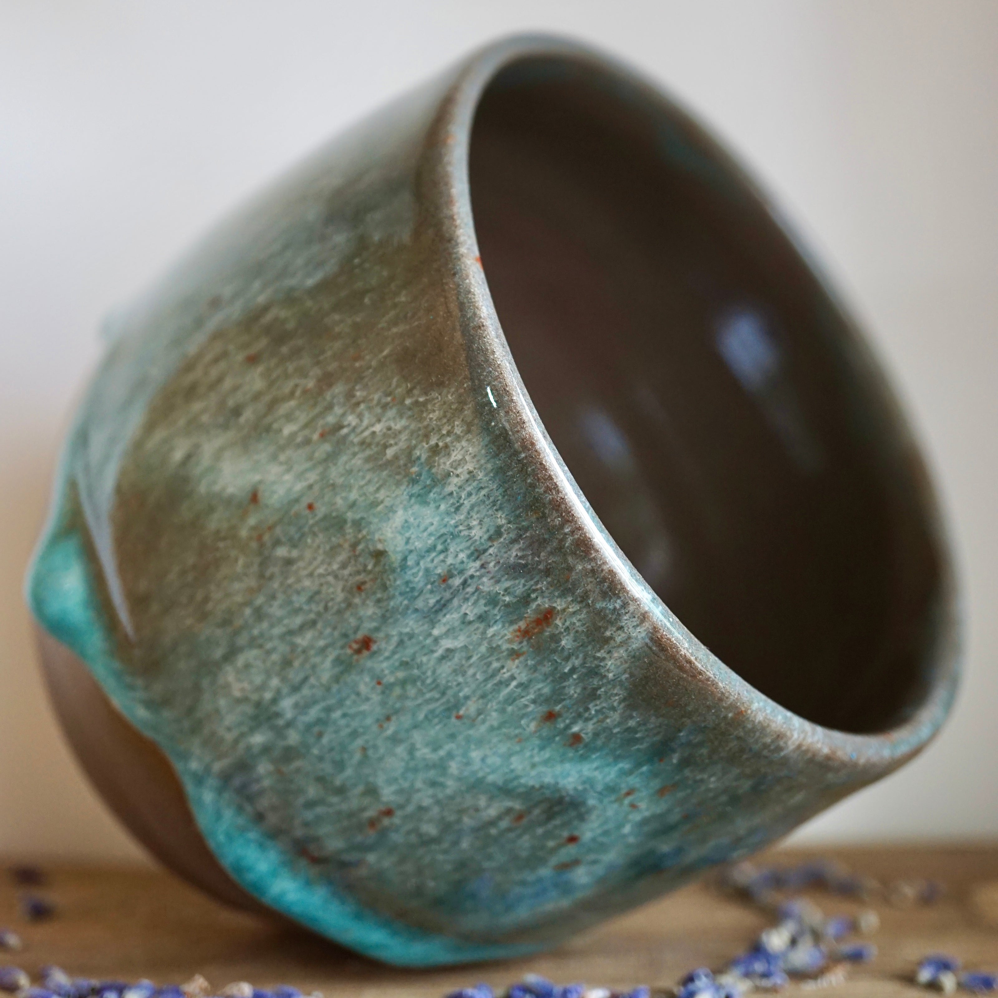 Alle meine Werke entstehen in liebevoller Handarbeit auf der Töpferscheibe. Dabei können leichte Abweichungen in Form, Farbe und Größe auftreten. Diese feinen Variationen machen jedes Stück zu einem Unikat und betont den handwerklichen Charakter. Auch die Entwicklung der Glasur und das Auftreten von Glasurtropfen sind natürliche Prozesse, die nur begrenzt kontrolliert werden können. Die Angegeben Maße dienen als Richtwerte und können ein wenig abweichen.