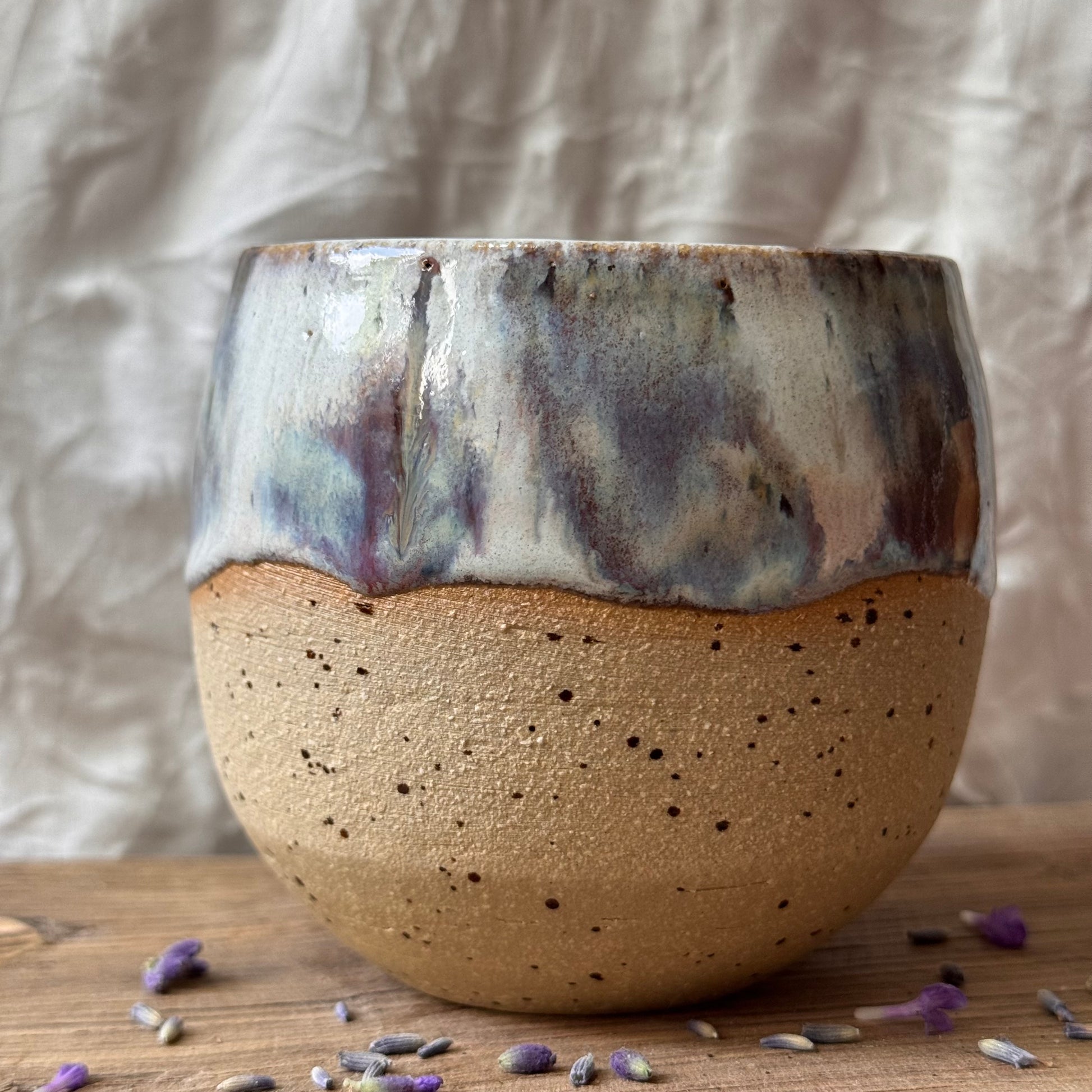 Handgetöpferter Keramikbecher aus hellem Pünktchen Steinzeugton.