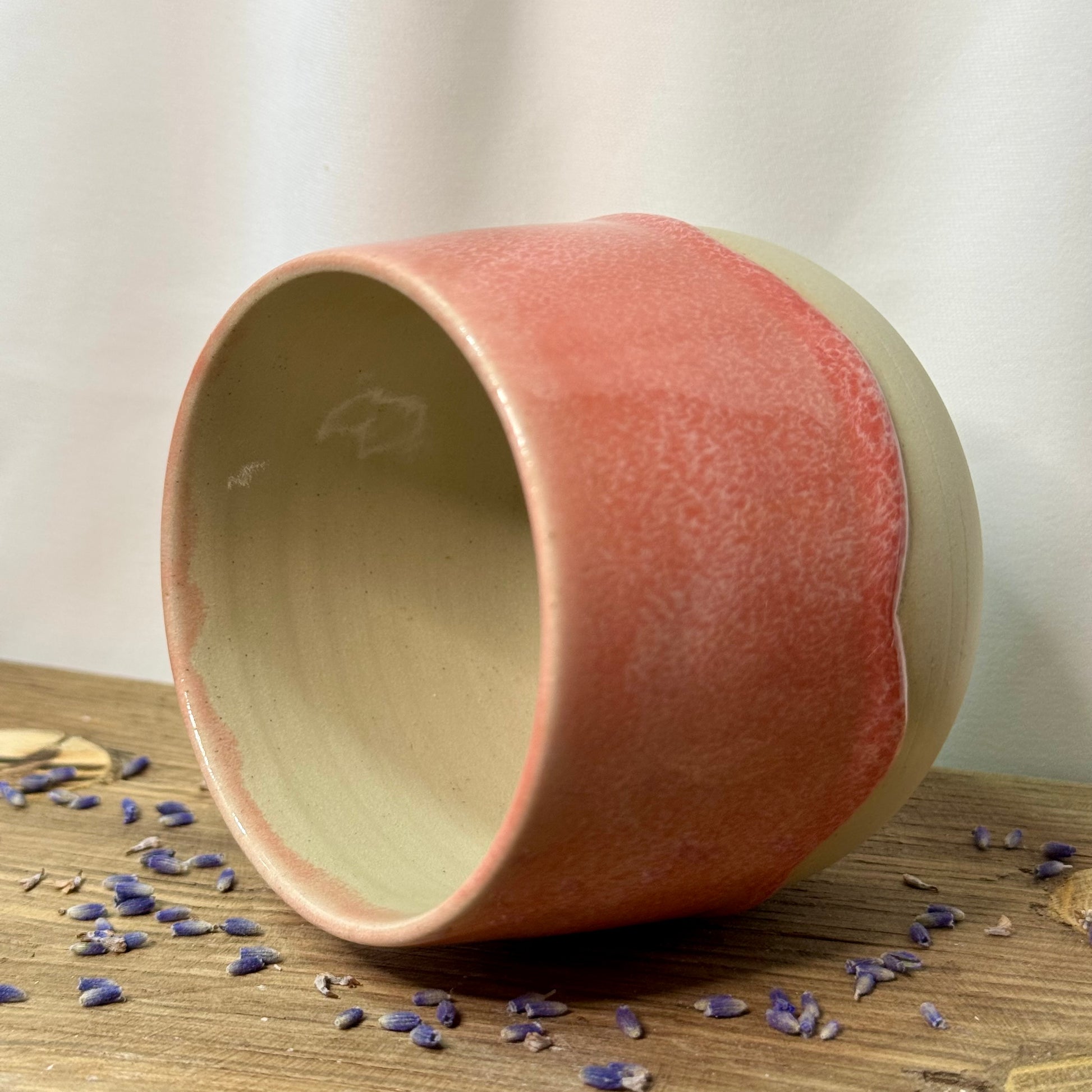 handgetöpferter Keramikbecher aus hellem Steinzeugton.